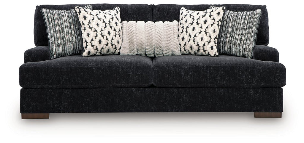 Specifications Dimensions 95''W x 45''D x 41''H Weight 191.0lbs. Brand Name Benchcraft® Material Fabric Lifestyle Contemporary Shade Dark UPC 24052965605 Features Reversible Loose Back Pillows Stationary Reversible Seat Cushions.